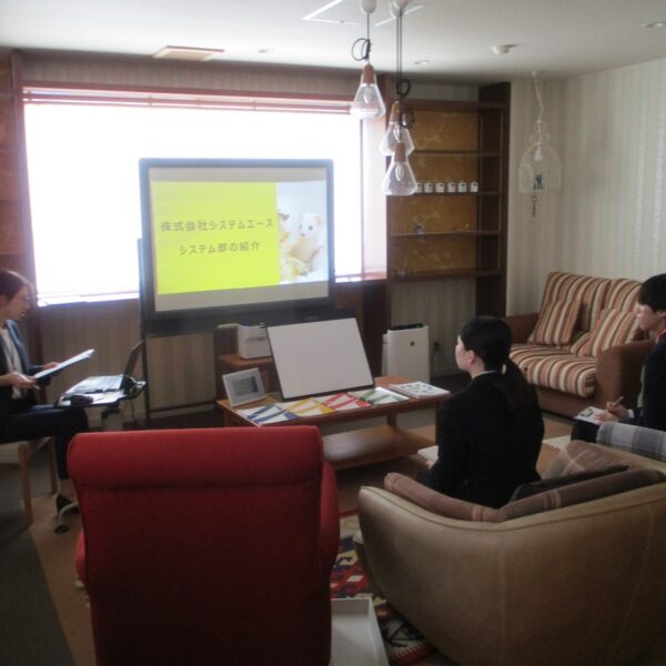 各部門の業務内容や弊社システムエースの販売管理システムを実際に触ってみたり・・・と。