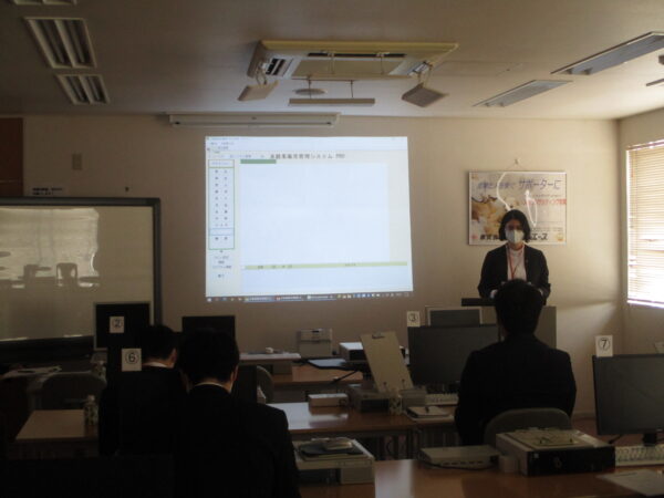 また、実際にシステムエースの販売管理システムの実演では、学生の皆さんからご参加いただき、実際にパソコンに触れて機能を実演していただきました。